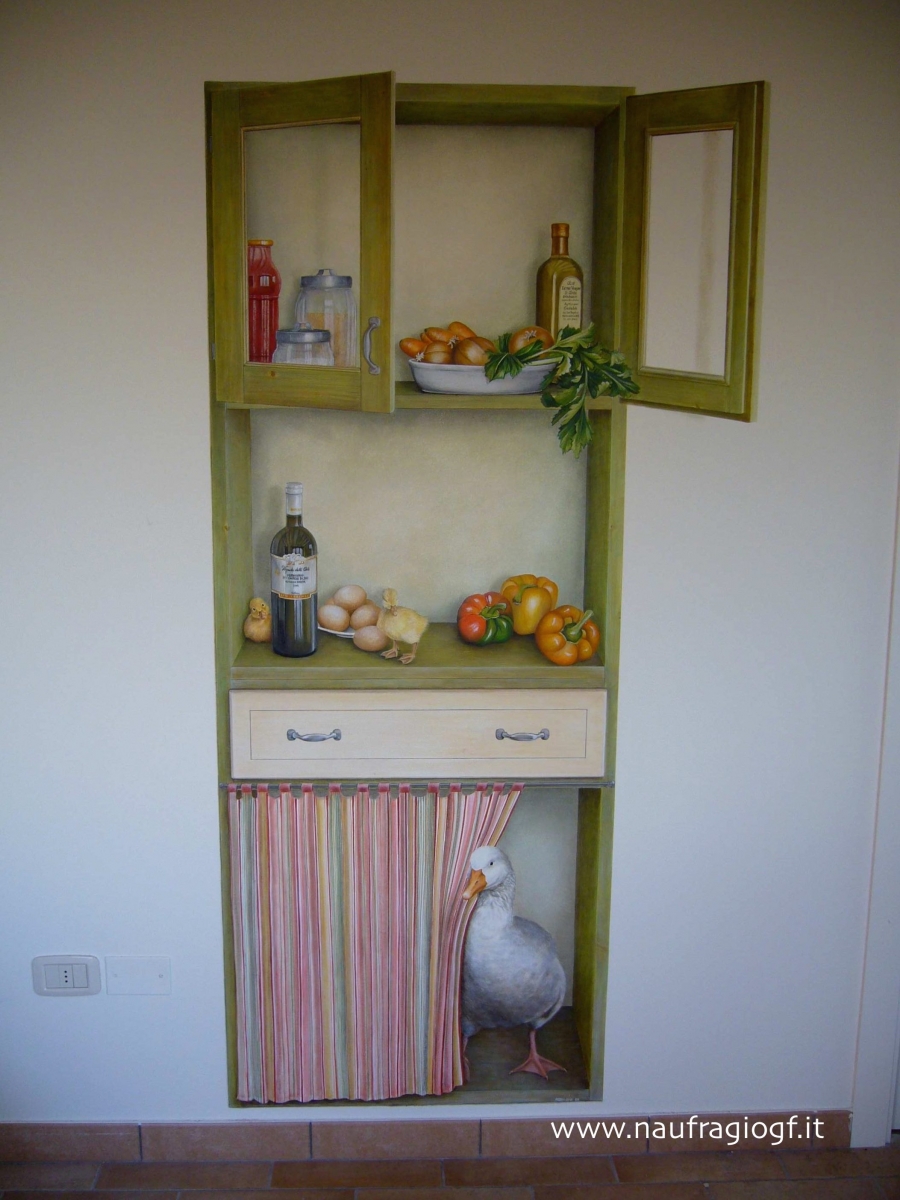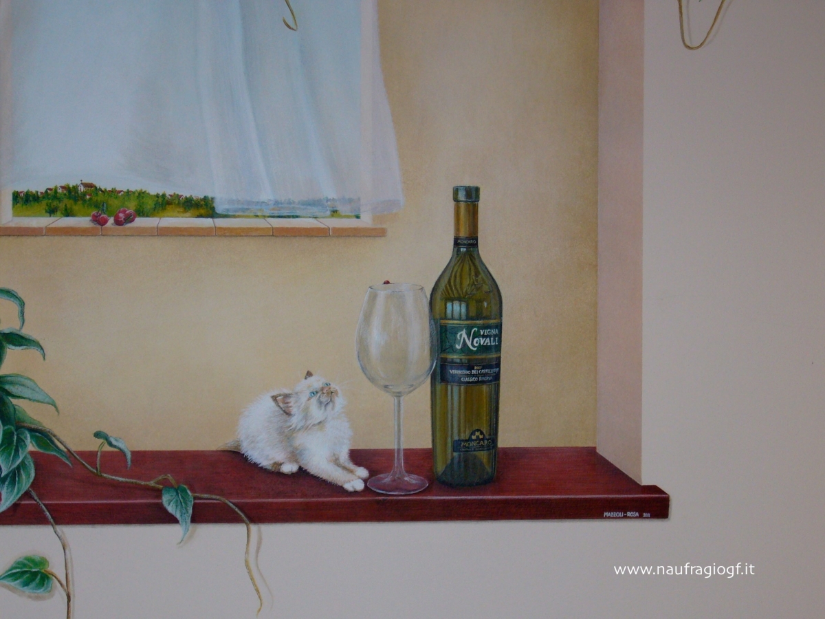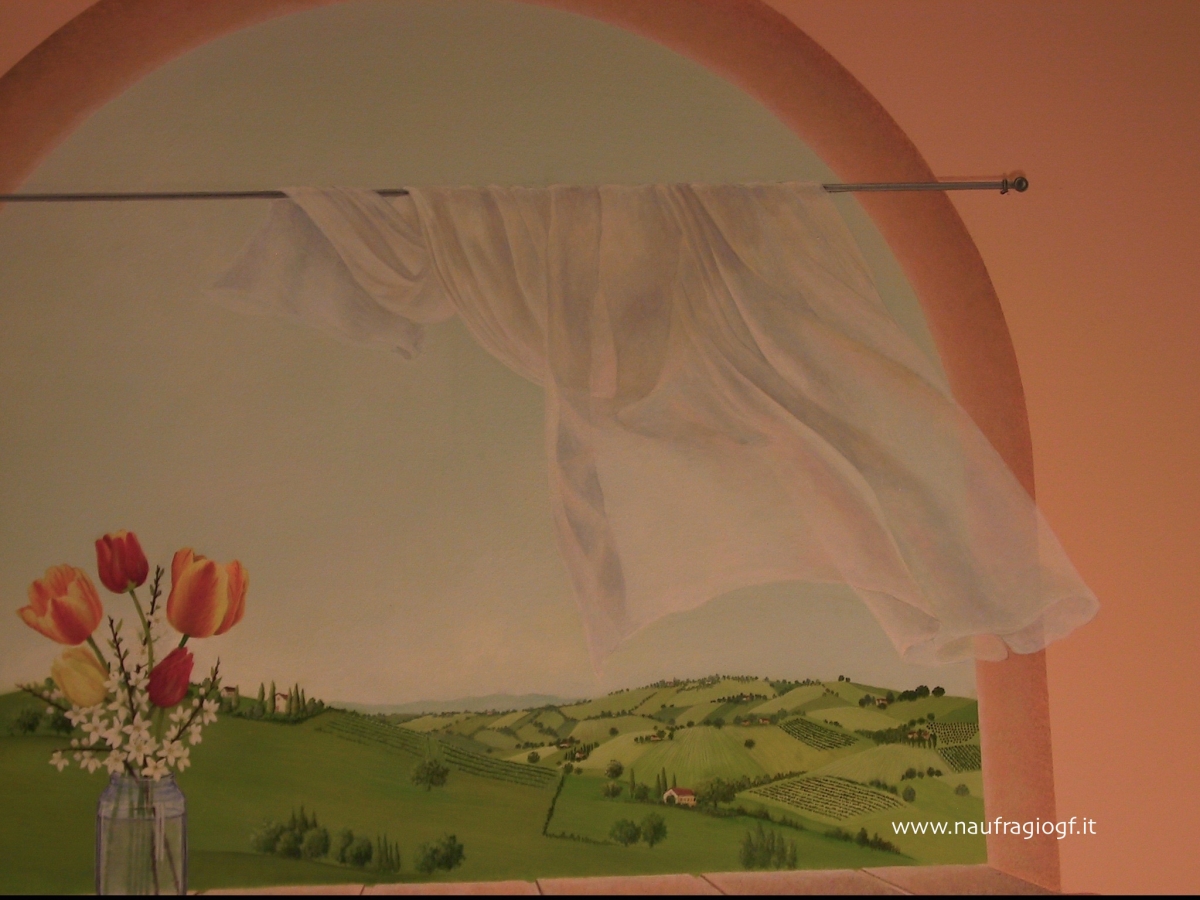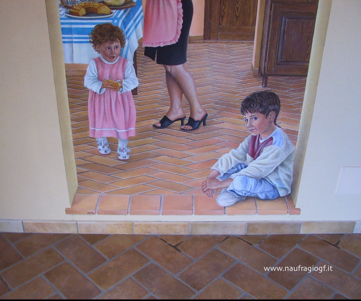 Incollaggio tela a parete dei trompe l’œil e dei 3D